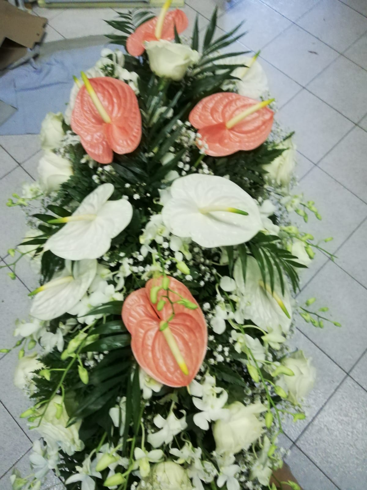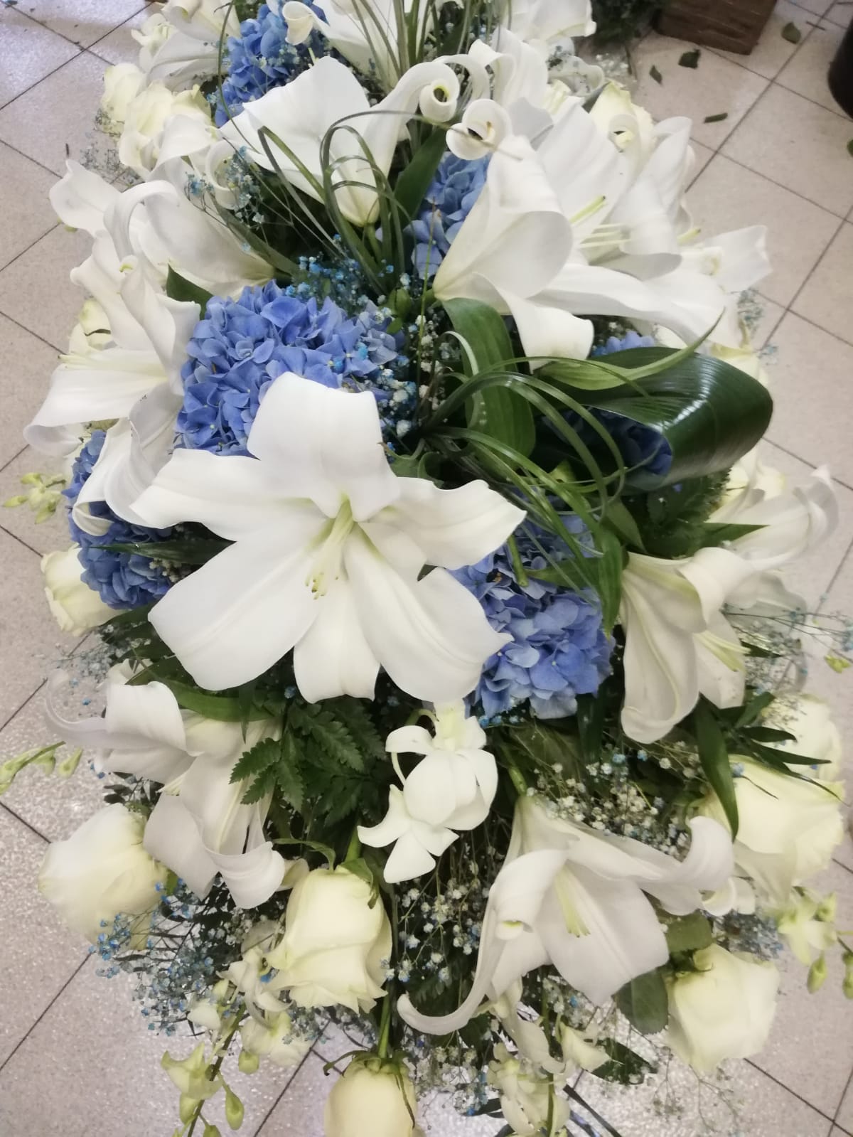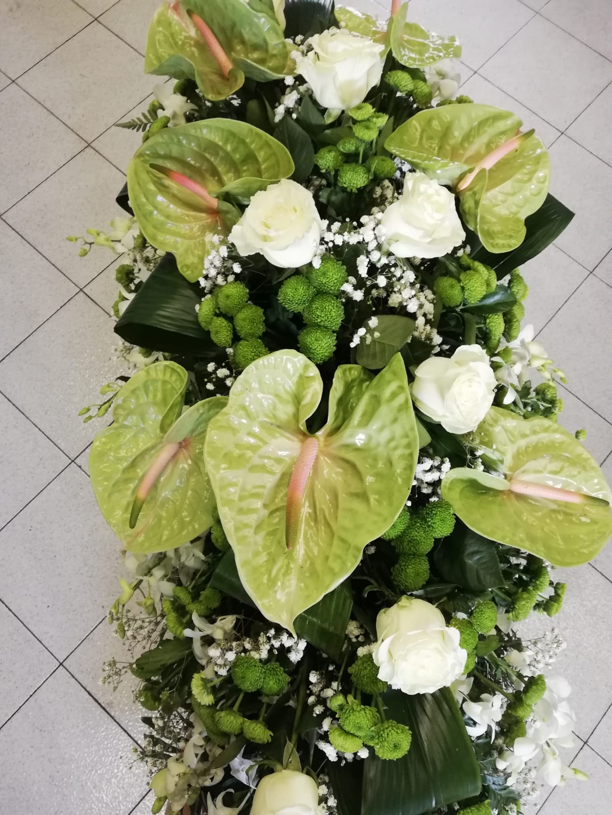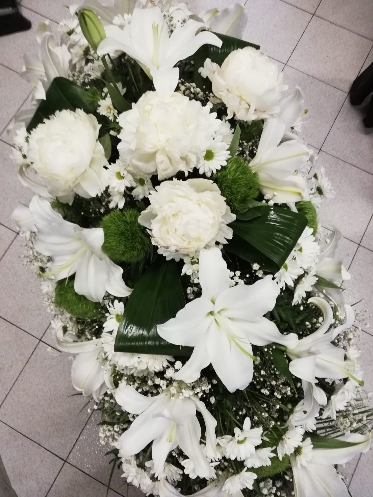 I fiori vengono trasportati nei nostri laboratori in bocciolo poche ore prima della cerimonia e posti in acqua per favorirne l’apertura nel loro massimo splendore, garantendo così freschezza e bellezza naturale. Le composizioni vengono poi disposte sul cofano mortuario, sull’auto funebre, in chiesa o nella camera mortuaria, a seconda delle richieste del cliente.