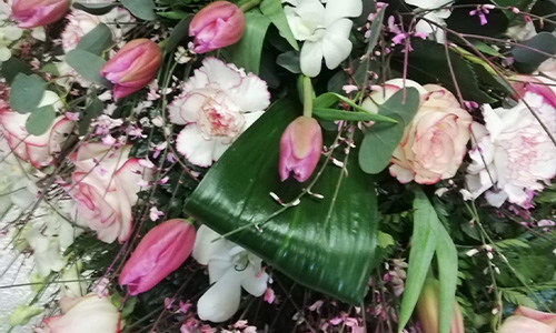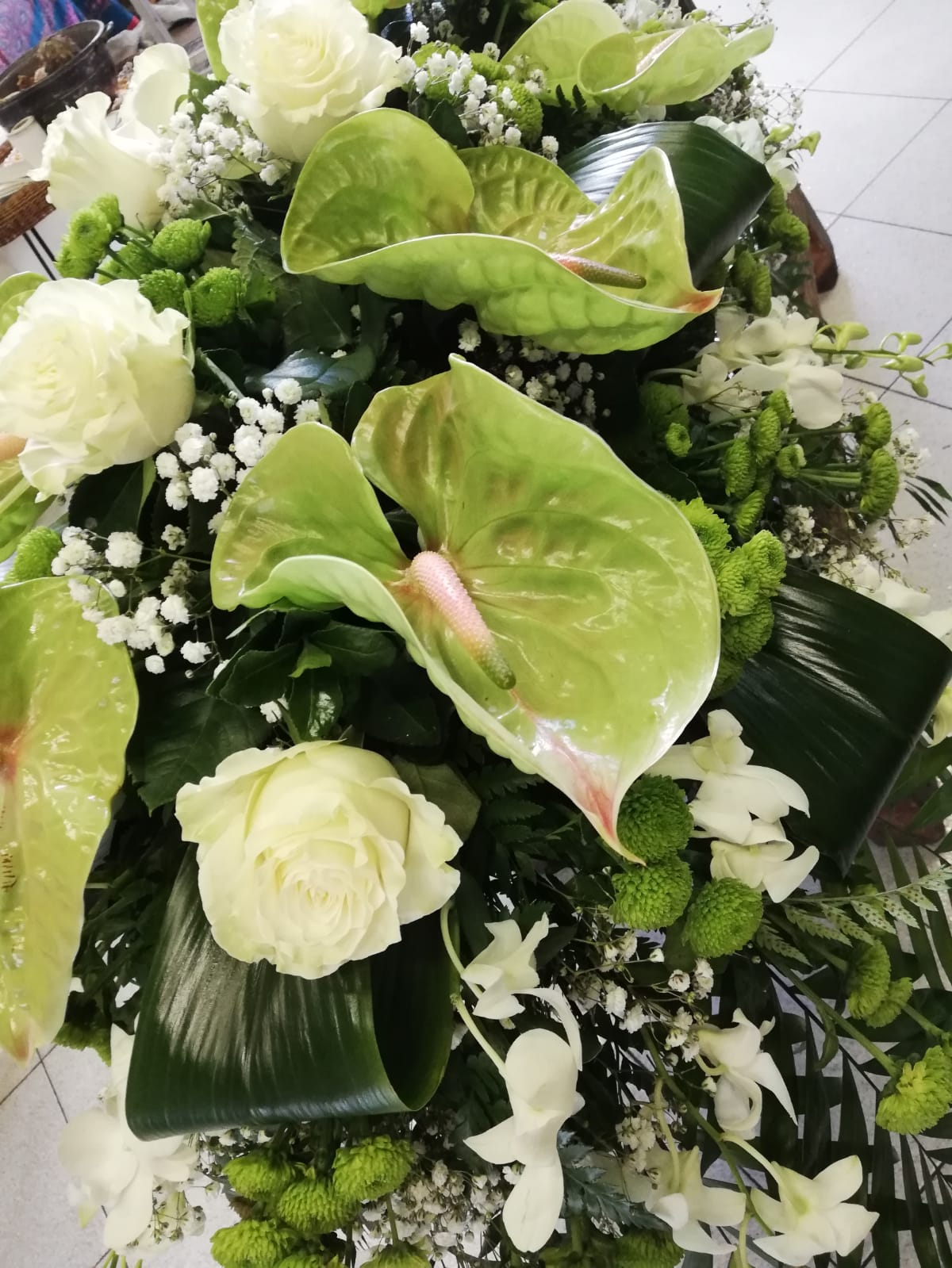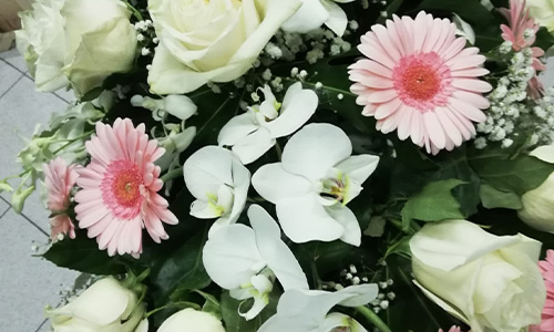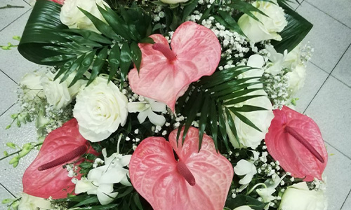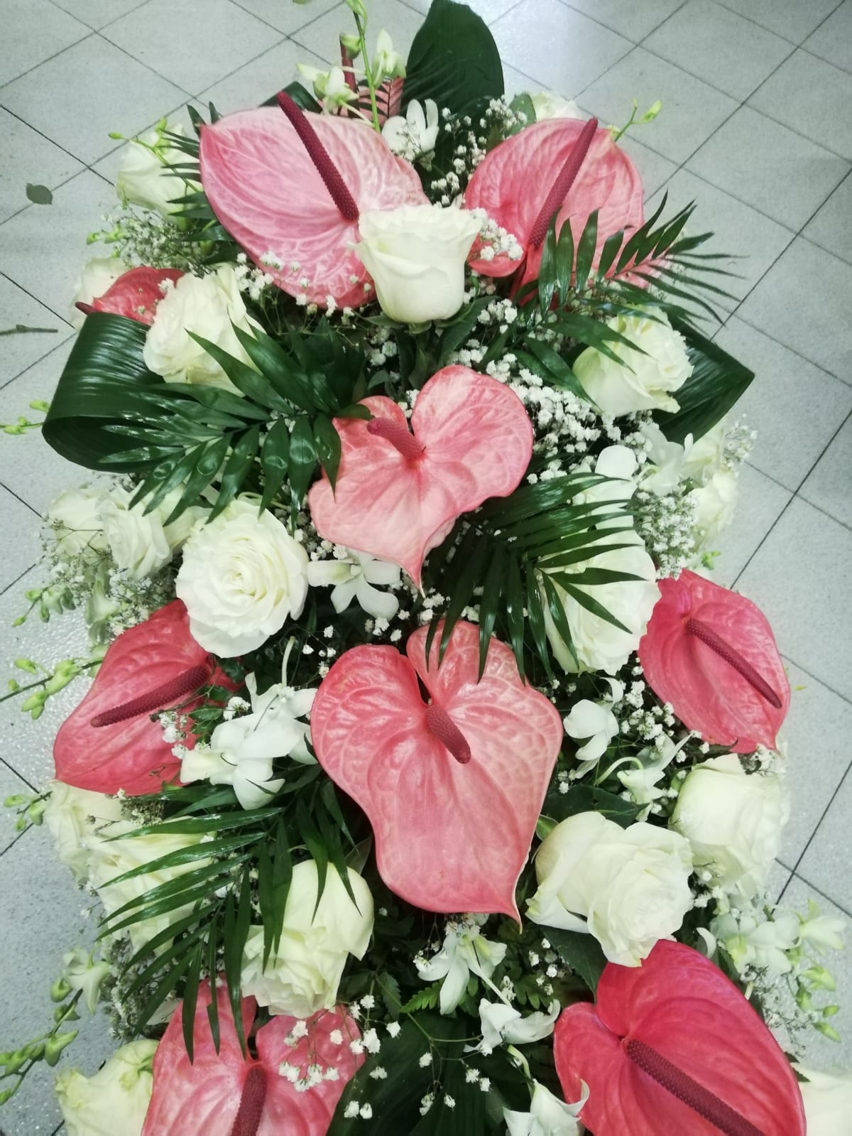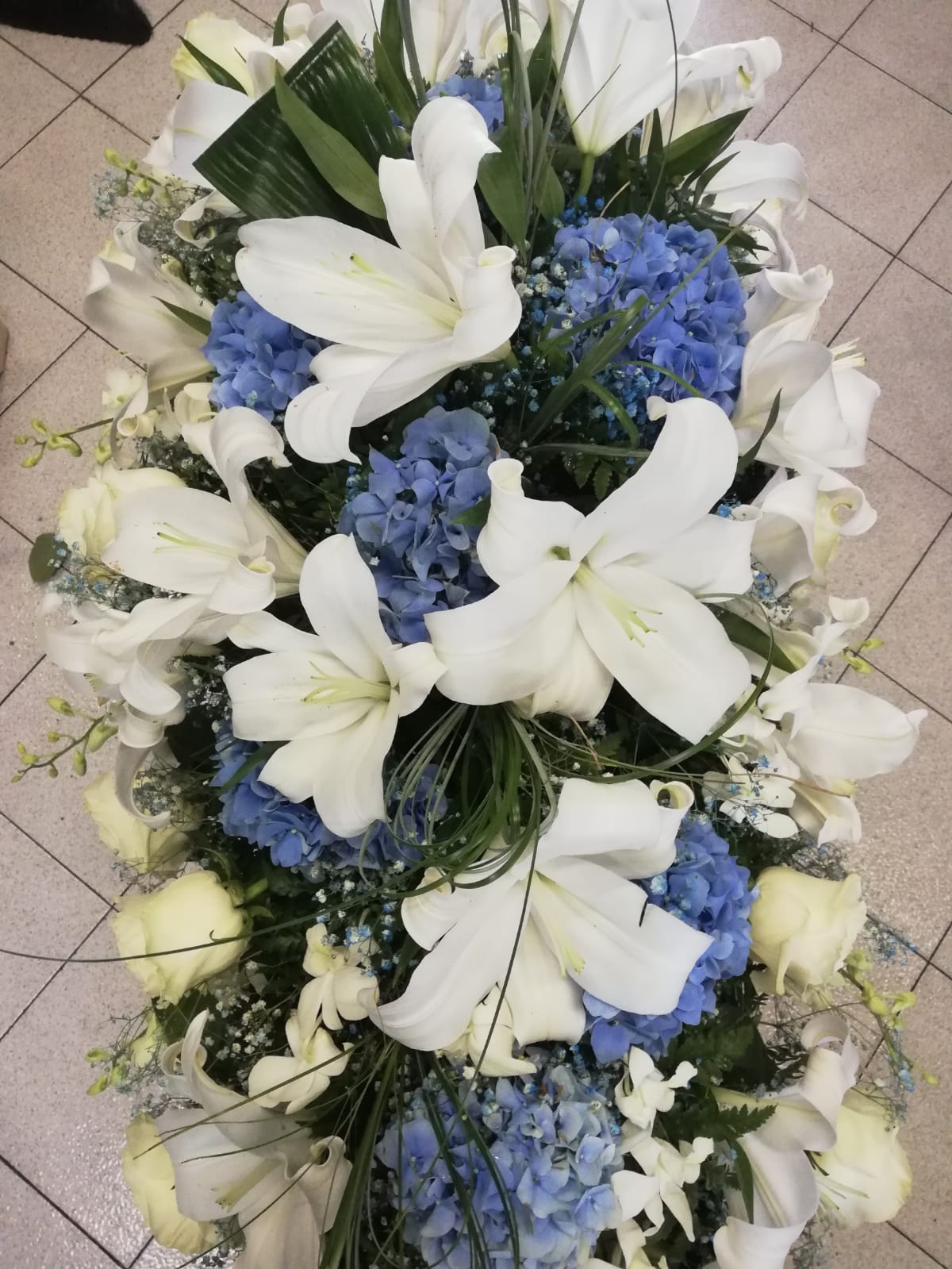I fiori vengono trasportati nei nostri laboratori in bocciolo poche ore prima della cerimonia e posti in acqua per favorirne l’apertura nel loro massimo splendore, garantendo così freschezza e bellezza naturale. Le composizioni vengono poi disposte sul cofano mortuario, sull’auto funebre, in chiesa o nella camera mortuaria, a seconda delle richieste del cliente.